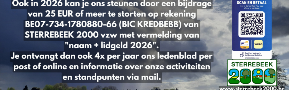 Lid worden/blijven kan door overschrijving van 25 EUR of meer op rekening BE07-7341-7808-8066 van STERREBEEK 2000 vzw
